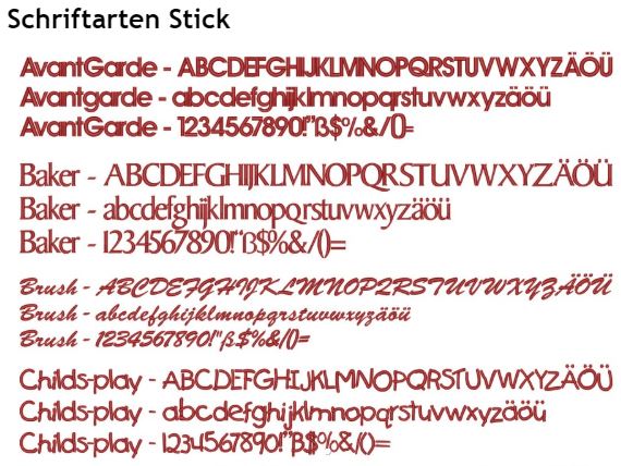 Schriftmuster finden Sie hier Schriftmuster Stick