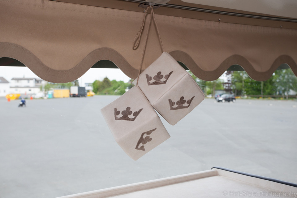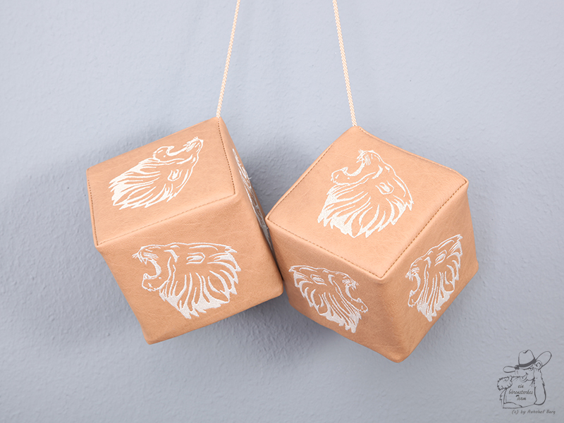 Hängende helle Kunstleder-Würfel mit Kronen-Stickerei im LKW.