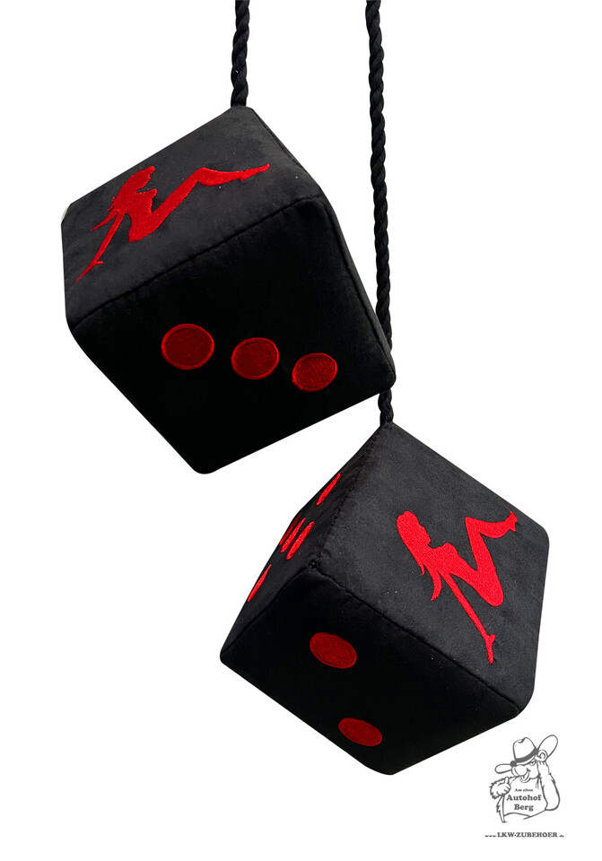 Würfel schwarz mit Pin Up Stick in rot