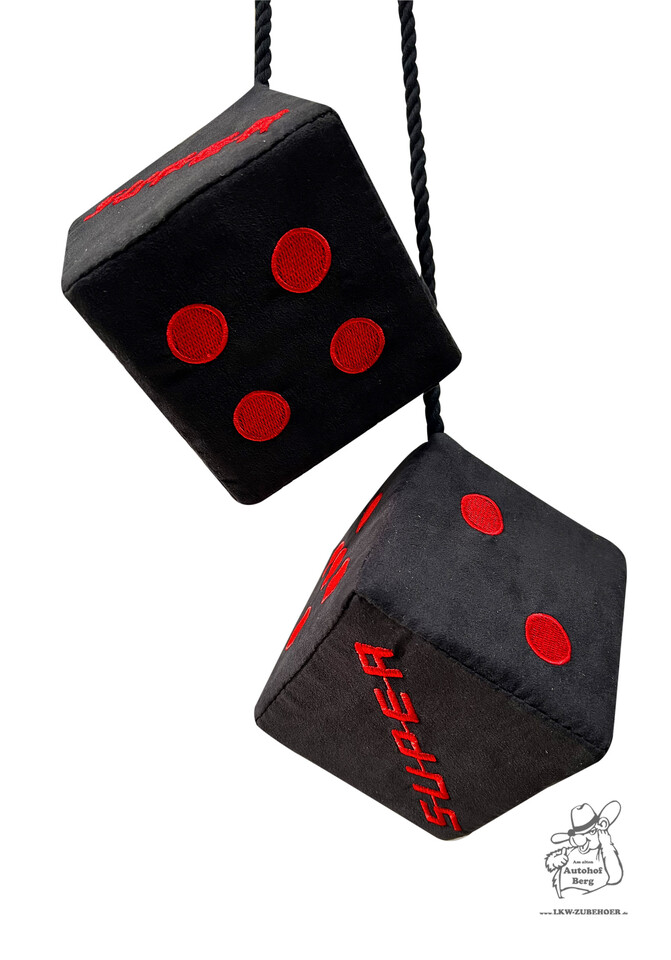 Würfel schwarz mit Super Stick in rot