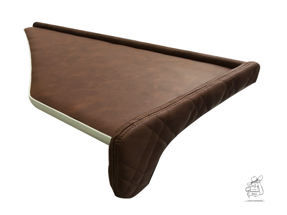 Hochwertiger brauner LKW-Tisch mit glatter Oberfläche, gesteppter Seitenkante und hellem Rand.