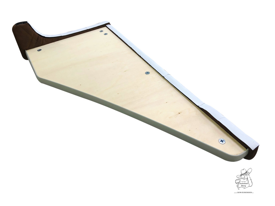 LKW-Tisch für Actros MP5 mit heller, glatter Tischfläche und weicher, brauner Seitenverkleidung.