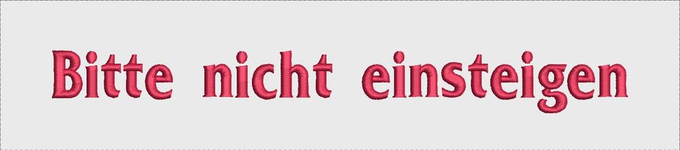 Absperrband mit roter Stickerei "Bitte nicht einsteigen" auf hellem Hintergrund.