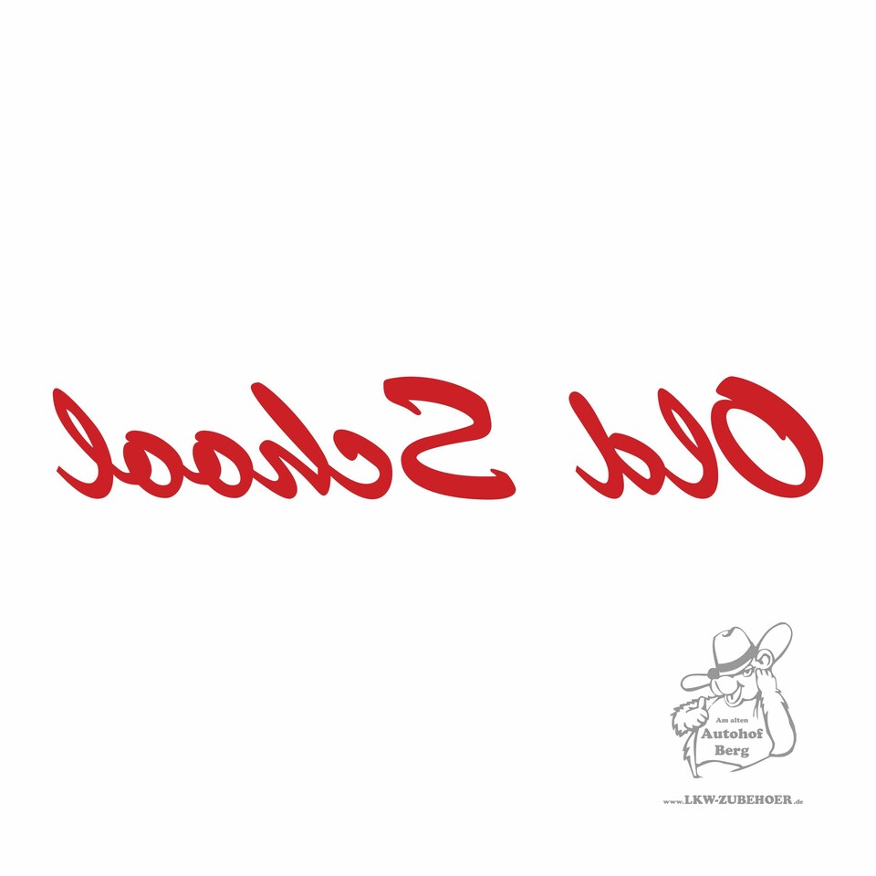 Schwarzer "Old School" Aufkleber mit geschwungenem Schriftzug auf weißem Untergrund.