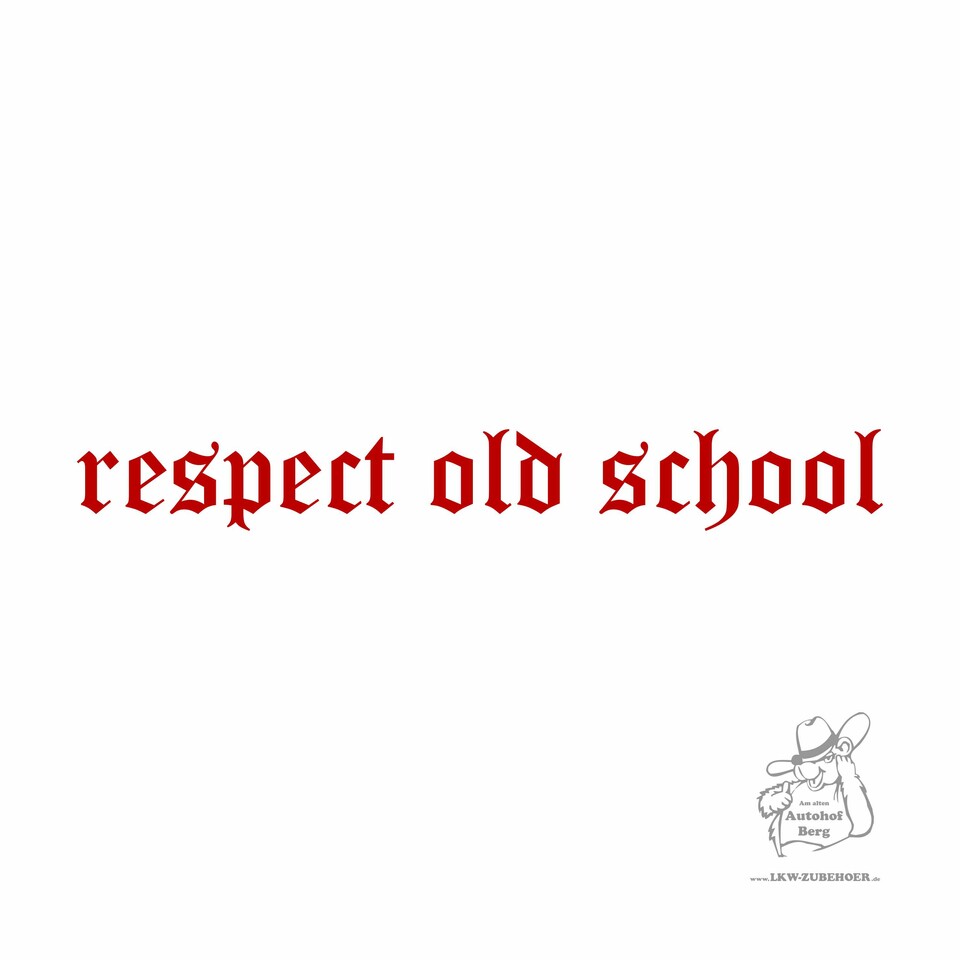 Schwarzer Aufkleber "respect old school" in gotischer Schrift auf weißem Hintergrund.