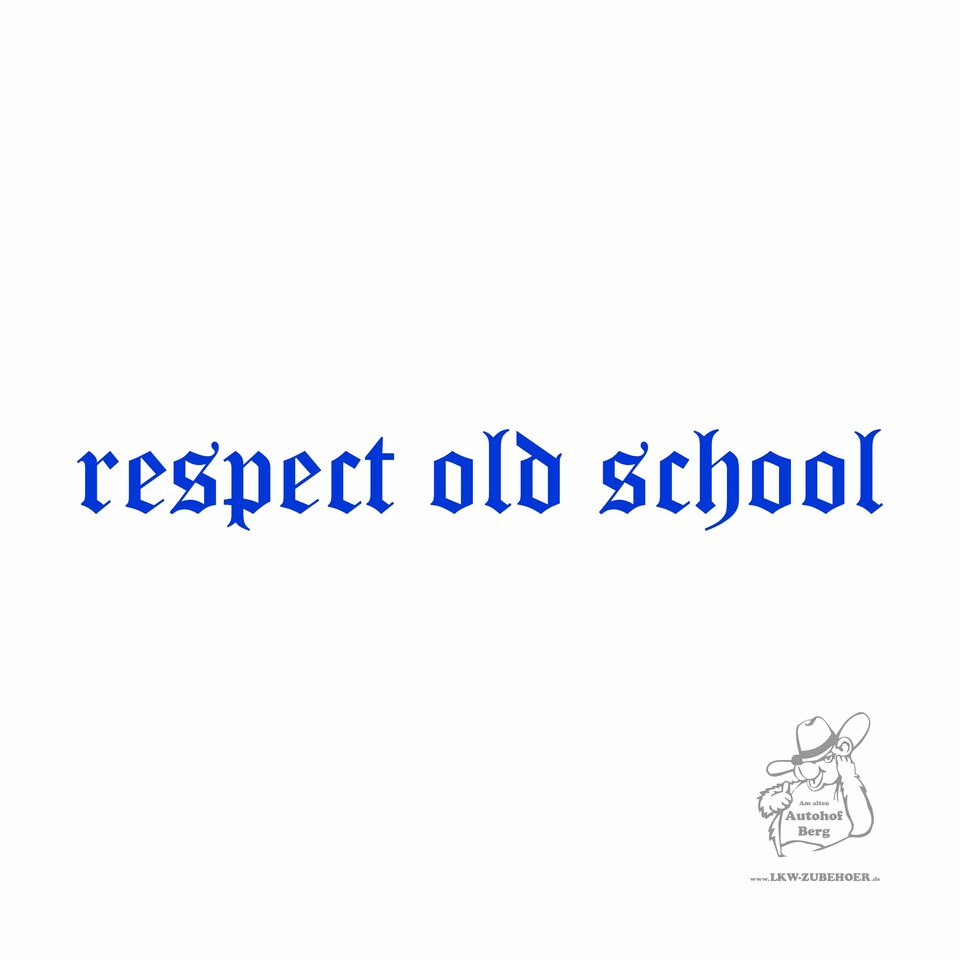 Blauer Aufkleber mit dem Schriftzug 'respect old school' in gotischer Schrift auf weißem Hintergrund.
