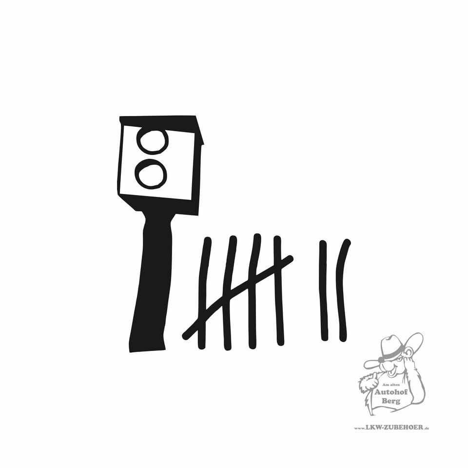 Schwarzer Aufkleber mit einer stilisierten Radarkamera und sieben Strichen daneben.