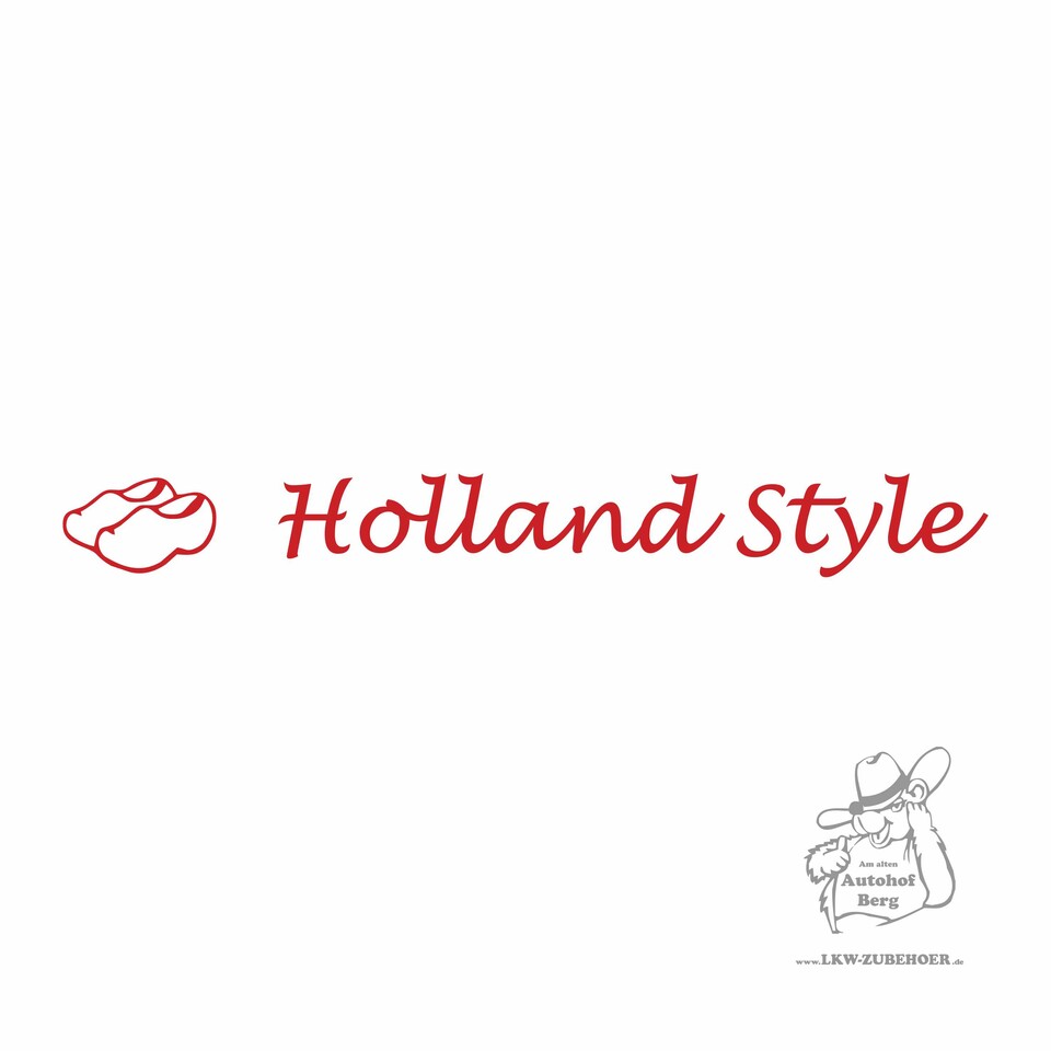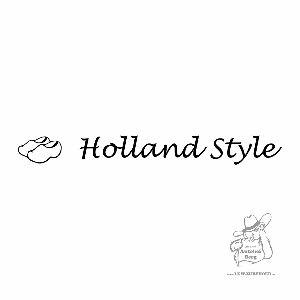 Aufkleber-Design mit grauem Klompen-Symbol und dem Schriftzug "Holland Style" auf weißem Grund.