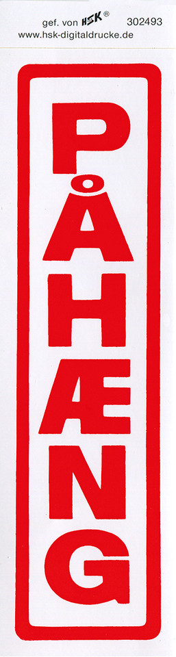Weißer Aufkleber mit rotem Rahmen und dem vertikalen Schriftzug PAHAENG in roten Großbuchstaben.