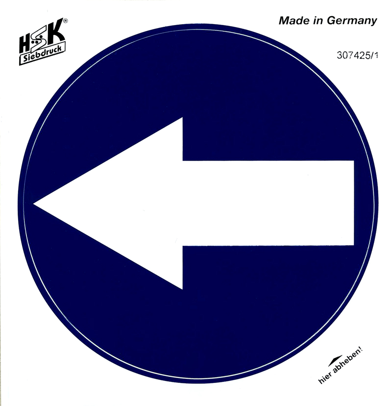 Blauer runder Aufkleber mit weißem Pfeil nach links. Einbahnstraßen-Pfeil für LKW-Zubehör.