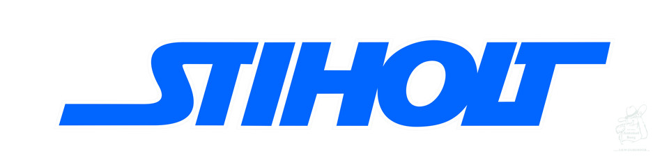 Blauer Aufkleber mit dem Schriftzug "Stiholt" auf weißem Hintergrund.