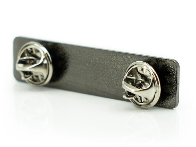Rückseite einer schwarzen TJ PIN Truck Junkie Kennzeichenplatte mit silbernen Verschlussmechanismen.
