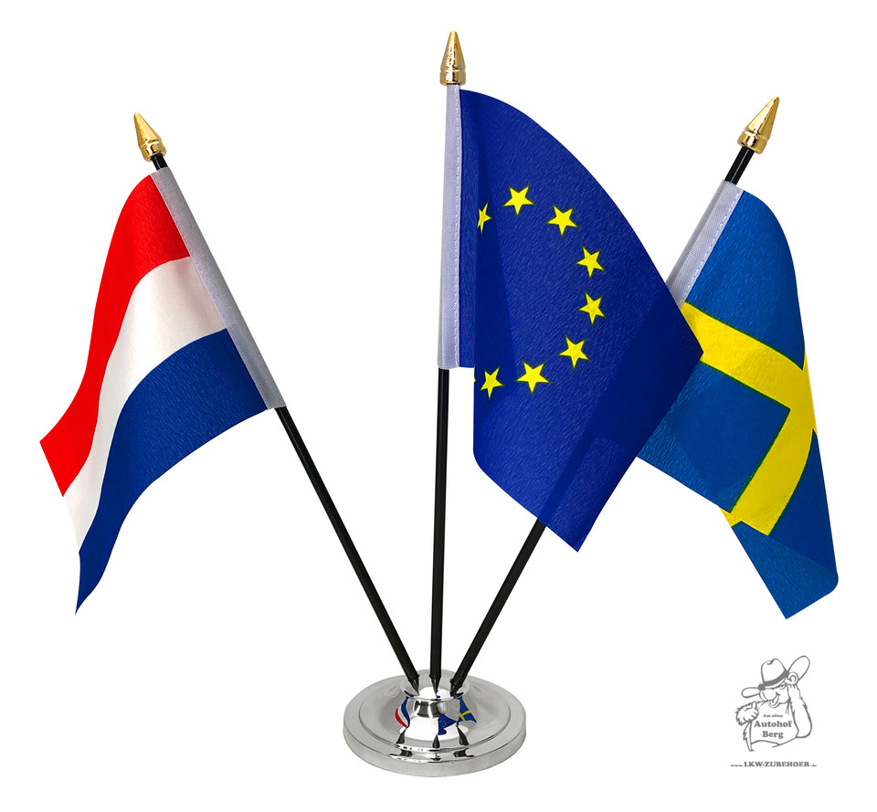 Chromfarbener Flaggenständer mit drei Löchern für Flaggen, auf weißem Hintergrund.
