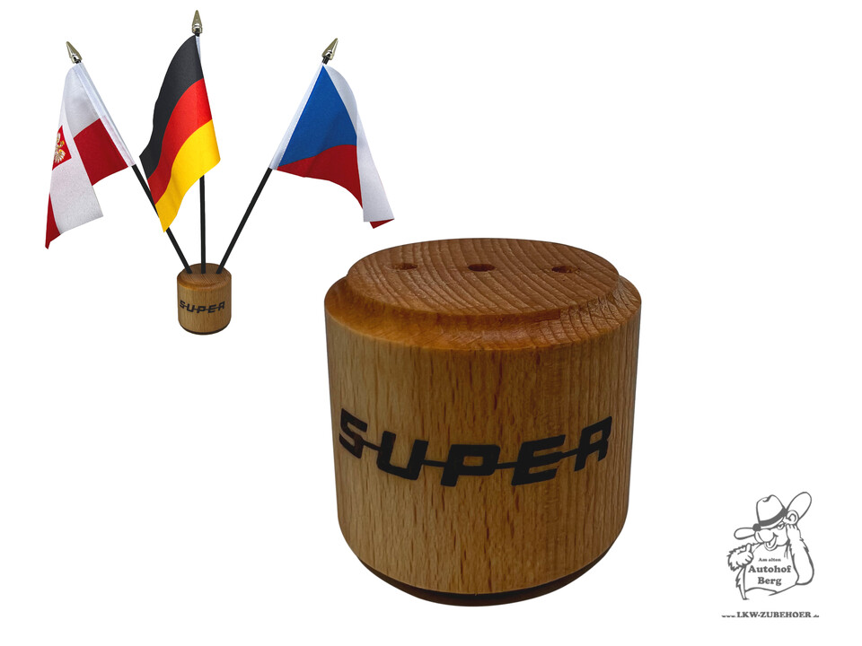 Flaggenständer für 3 Flaggen aus Holz "Schriftzug"