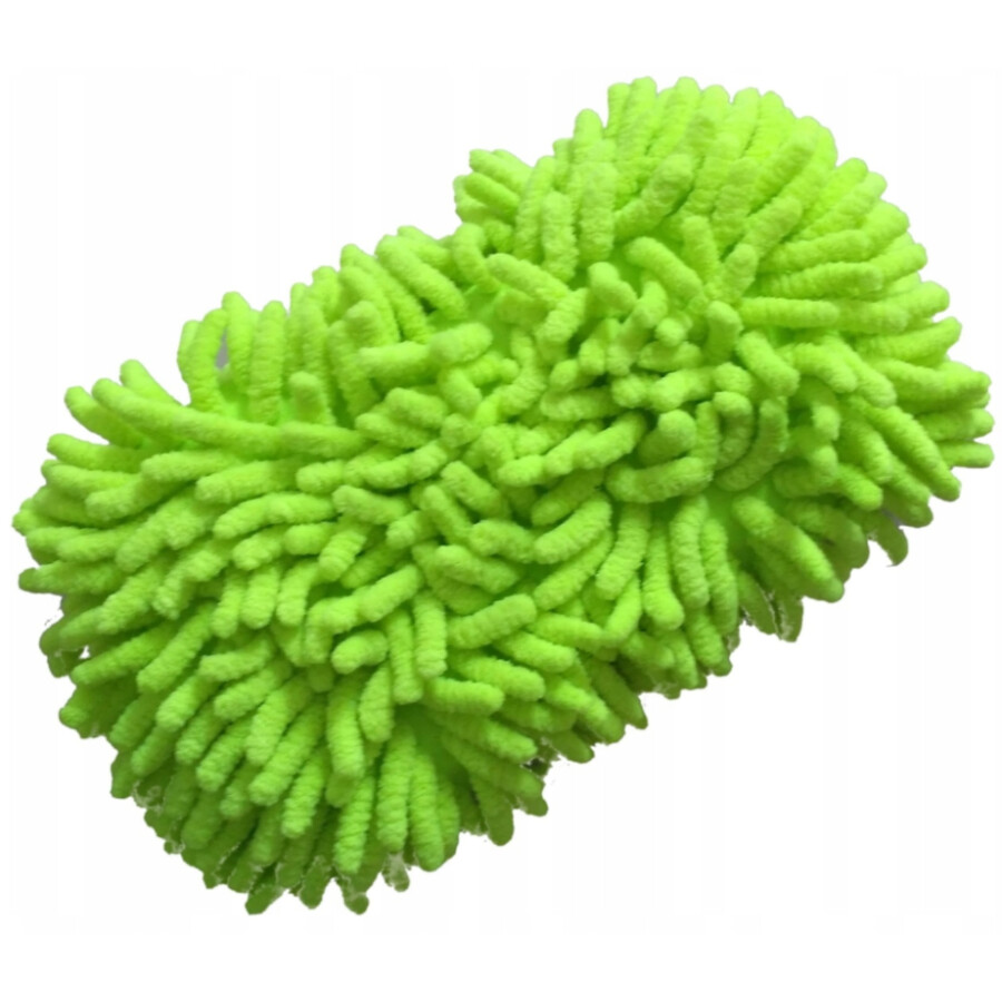 Grüner Mikrofaser Waschschwamm mit flauschiger, fingerartiger Oberfläche.