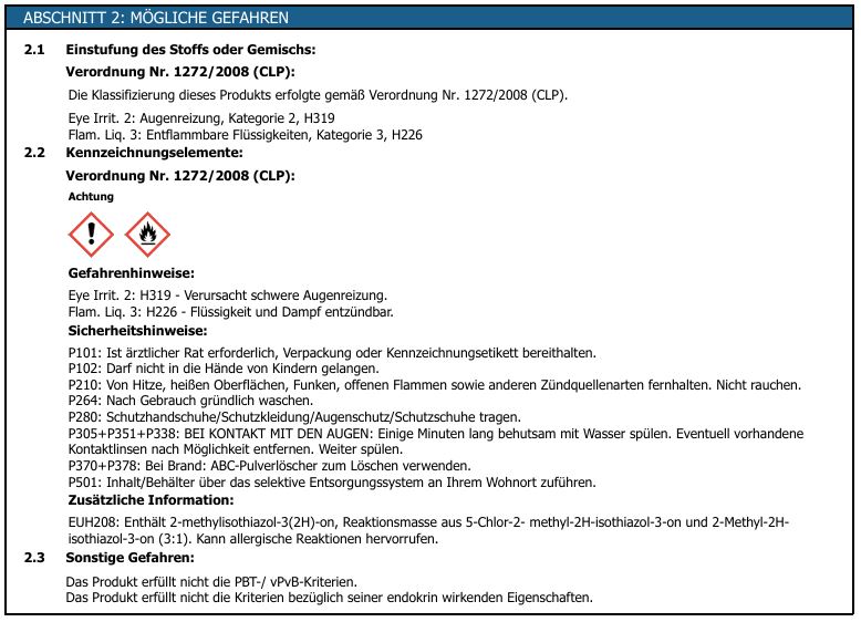 * Eye Irrit. 2: H319 - Verursacht schwere Augenreizung.