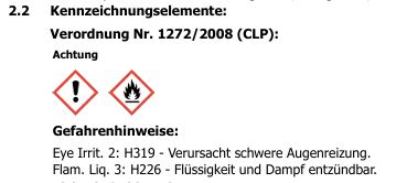 * Flam. Liq. 3: H226 - Flüssigkeit und Dampf entzündbar.