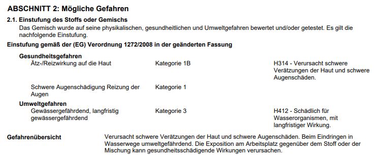 H314 Verursacht schwere Verätzungen der Haut und schwere Augenschäden.
