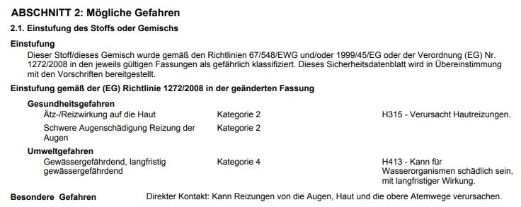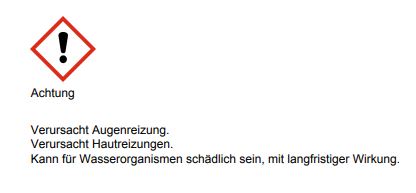 H412 Schädlich für Wasserorganismen, mit langfristiger Wirkung.