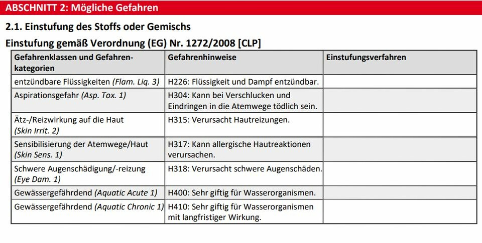 * H304 Kann bei Verschlucken und Eindringen in die Atemwege tödlich sein.