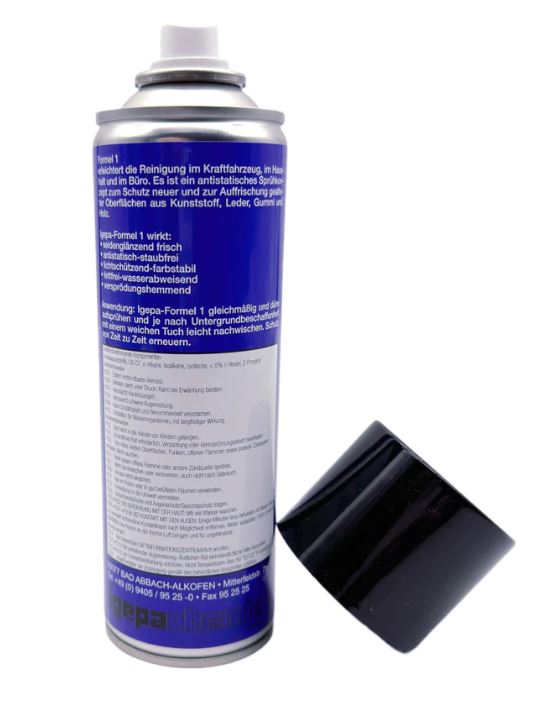 Das Formel 1 Spray erleichtert die Reinigung im LKW, Caravan oder auch im Büro. Es ist vielseitig anwendbar und durch das antistatische Sprühkonzept schützt es fast alle Oberflächen. Auch gealterte Oberflächen bekommen einen erfrischenden Schutz.