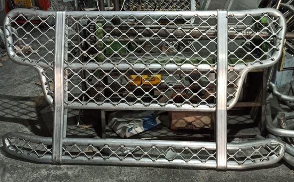 Die Verwendung der Bull Bar ohne Schutzbeschichtung ist nicht ratsam, da der Werkstoff extrem auf Umwelteinflüsse reagiert. Die Bull Bar wird im unbehandelten Zustand an Sie ausgeliefert. Während der Herstellung wird die gesamte Bull Bar abgeschliffen, wodurch Schleifspuren an der Oberfläche sichtbar sind.