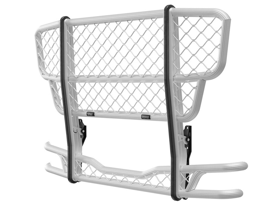 Trux Frontschutzbügel Highway aus glattem Aluminium, silberfarben, mit Rautengitter und schwarzen Schutzleisten.
