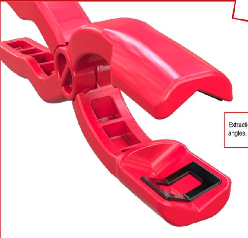 Rote Radmutternzange aus Kunststoff für BEAM Produkte.