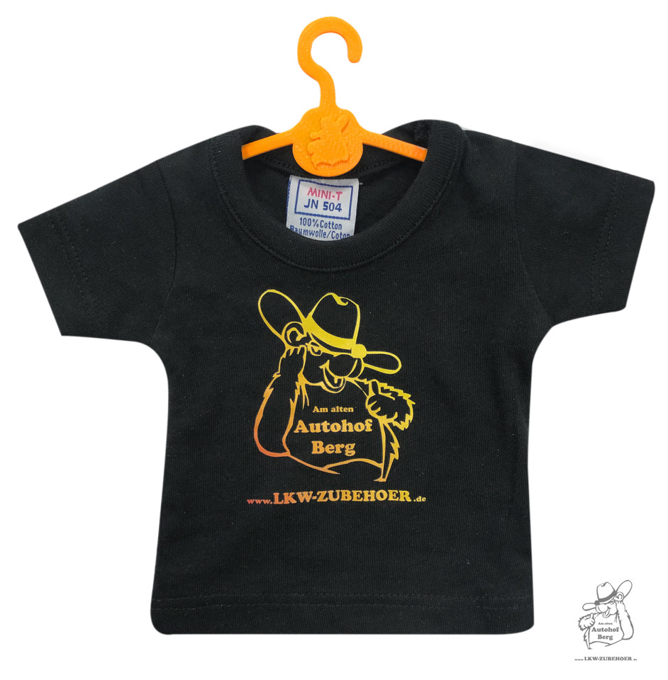 Minishirts aus Baumwolle in Blau, Schwarz und Rot mit Autohof Berg Druck.