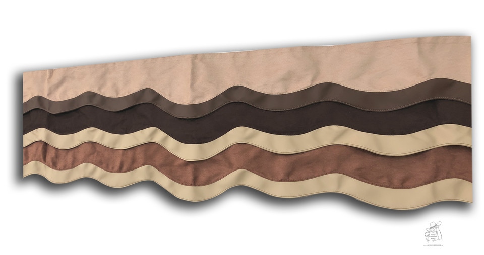 LKW-Bordüre Exclusiv aus Wildlederimitat in Braun- und Beigetönen, mit wellenförmigen, doppelt genähten Stofflagen.