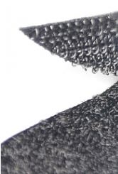 Nahaufnahme von schwarzem Klettband: Das Haftband mit Haken und das Velourband mit Schlaufen sind sichtbar.