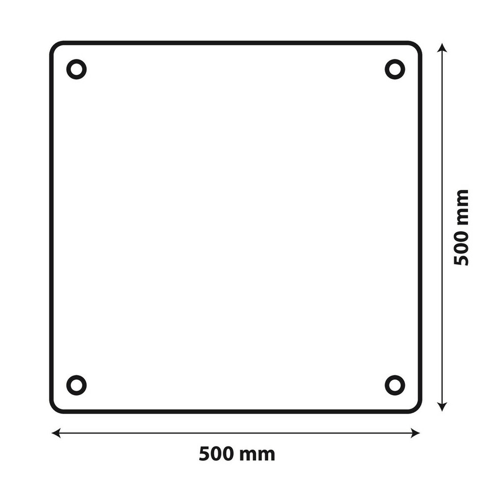 Weiße quadratische Aluminium-Warntafel mit Befestigungsösen. Maße 500x500 mm.