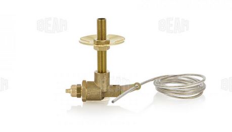 Zugventil aus Messing mit Gewindestange und Drahtseil.