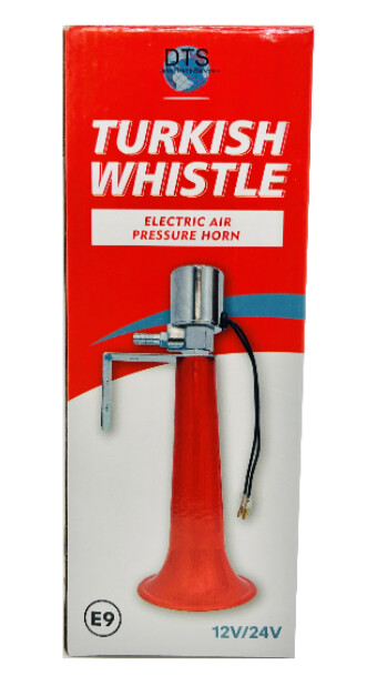 Produktverpackung mit einer roten Turkish Whistle Lufthupe und silbernem Aufsatz.