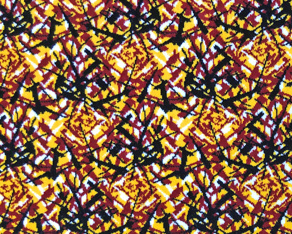 Abstraktes Plüschmuster in Rot, Gelb, Schwarz und Weiß für den Minischal.