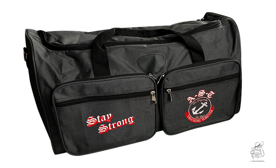 Dunkelgraue AST Reisetasche aus Polyester mit zwei Reißverschlussfächern, "Stay Strong" Schriftzug und Anker-Logo.