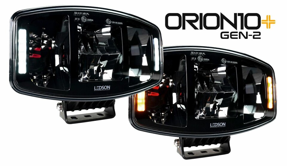 Ledson Orion10+ Gen2 LED Zusatzscheinwerfer mit orange leuchtendem Positionslicht.