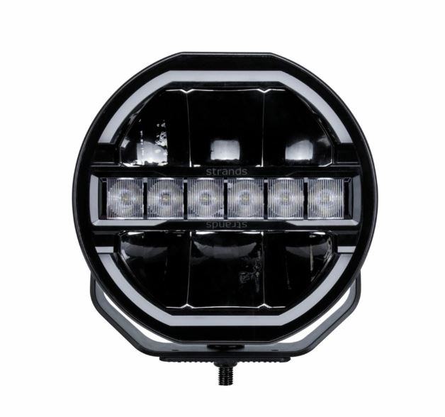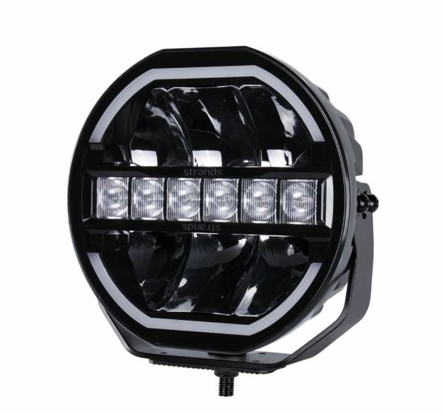 Runder, schwarzer Strands Siberia Skylord LED-Fernscheinwerfer mit weißer Ring-Positionsleuchte und zentralen LEDs.