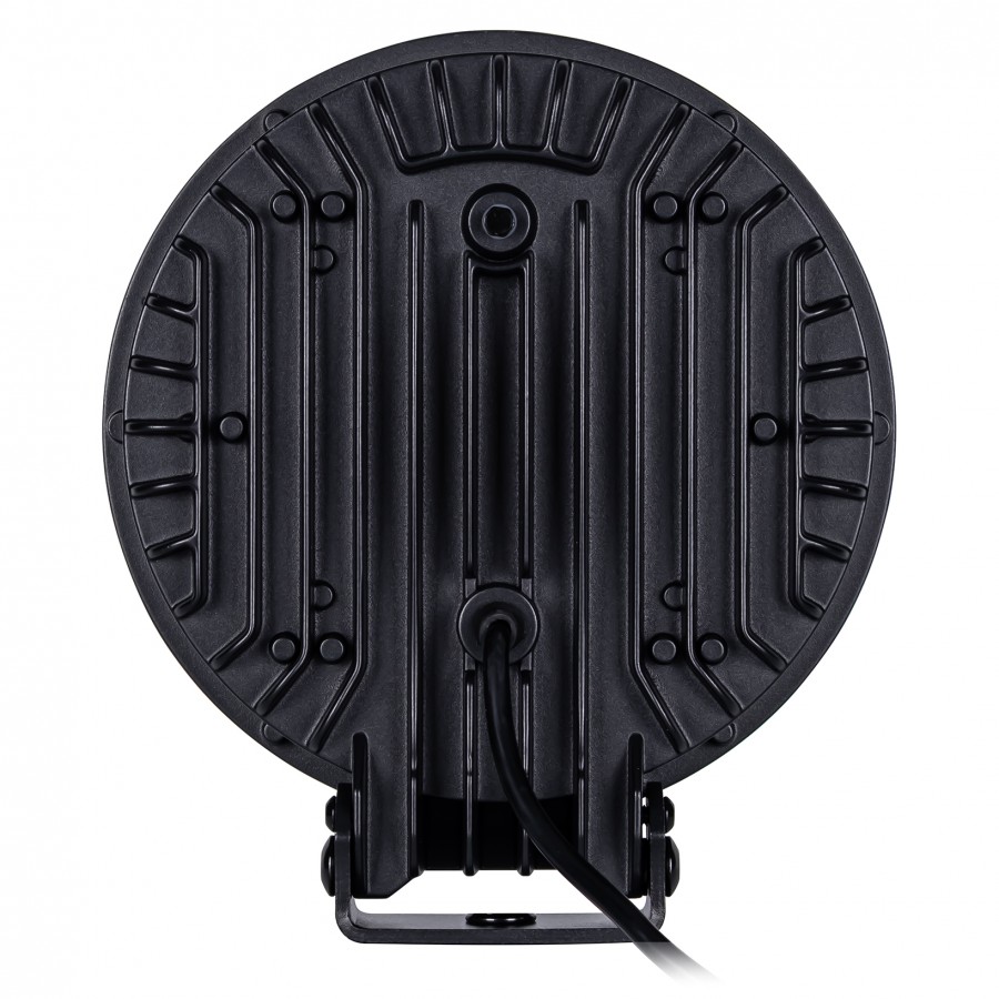 Schwarzer LED Fernscheinwerfer SPIDER TOXIC, Rückseite mit Aluminium-Kühlrippen und stabiler Halterung.