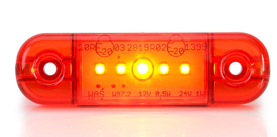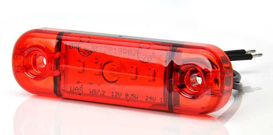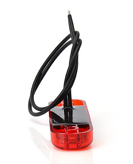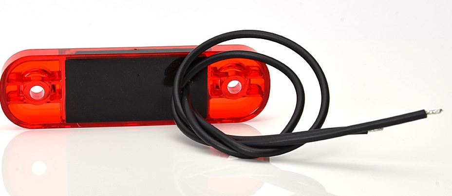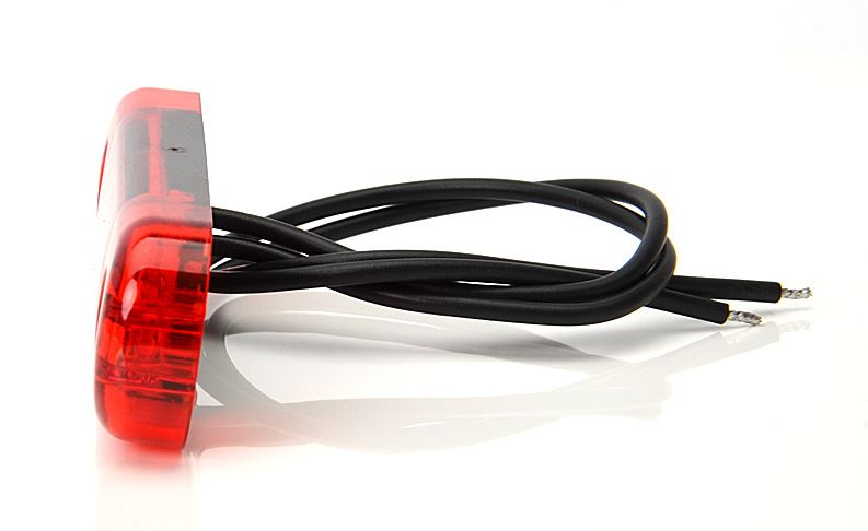 Rote, schlanke LED Positionsleuchte mit Anschlusskabel.