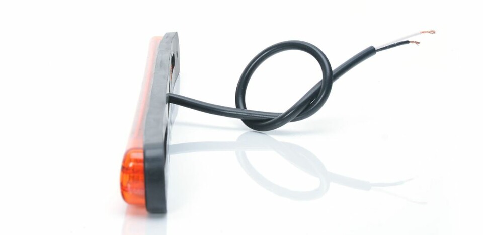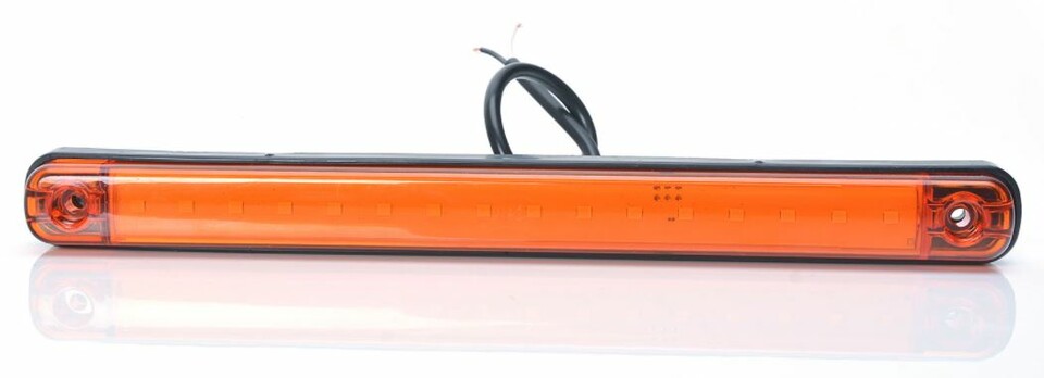 Orange-schwarze LED Leiste Blinkleuchte mit schwarzem Anschlusskabel.