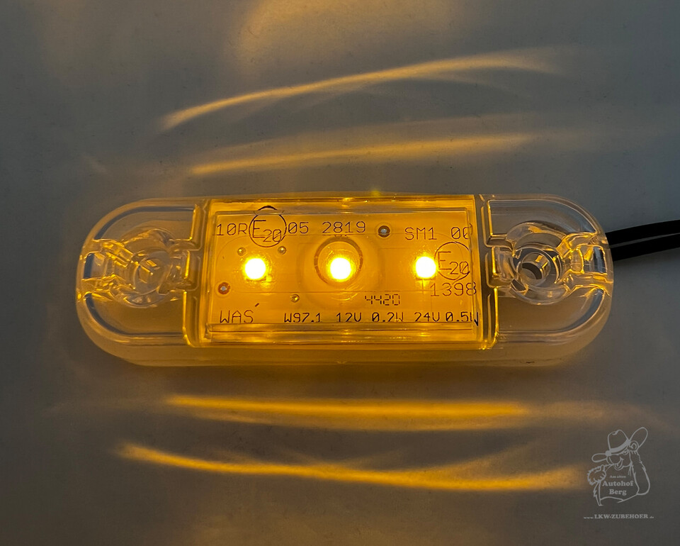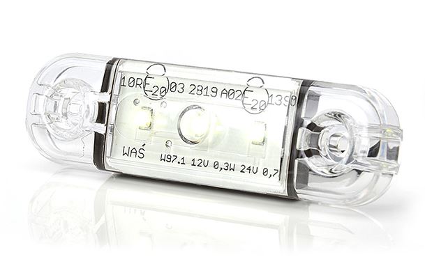 Transparente, superdünne Position Leuchte SLIM 3LED mit leuchtenden weißen LEDs.