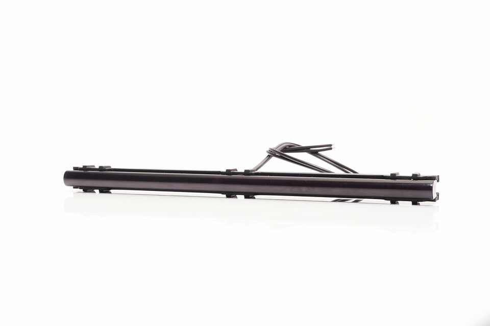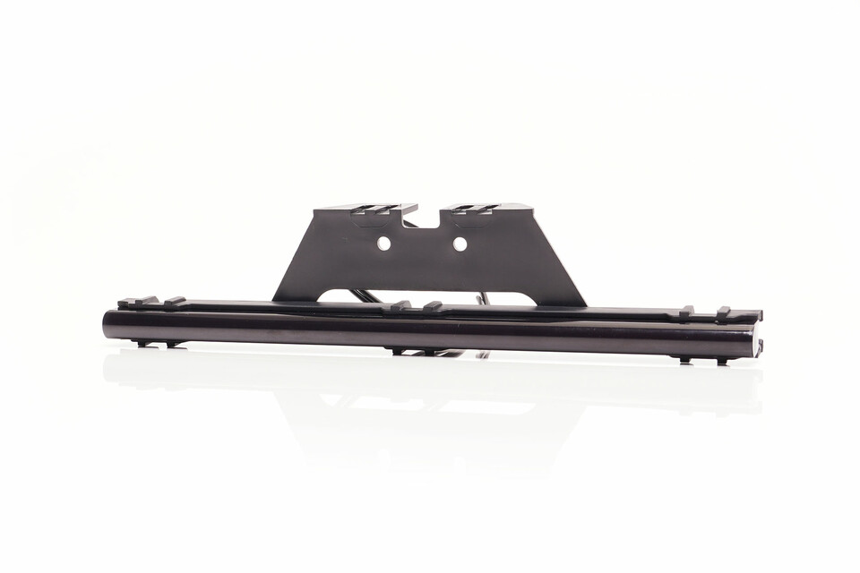 Schwarze Markierungsleiste mit integrierter Halterung auf weißem Hintergrund.