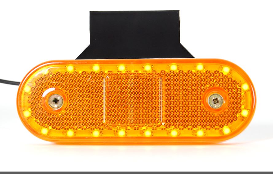 Orange ovale Seitliche Umrissleuchte mit LEDs, reflektierendem Bereich und zwei Befestigungsschrauben.