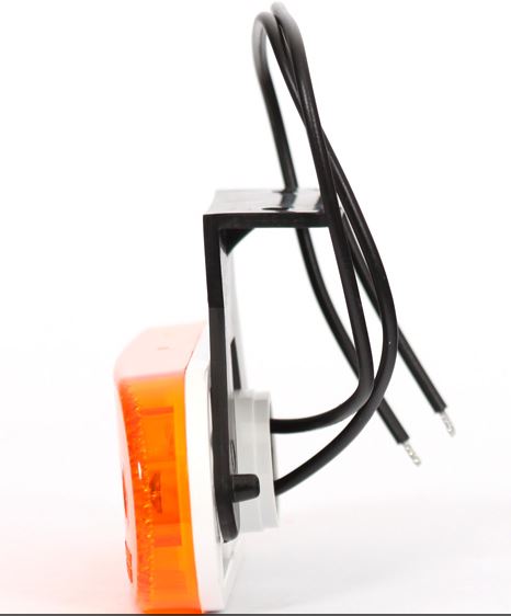 Orangefarbene Umrissleuchte mit weißem Sockel, schwarzer Halterung und Anschlusskabeln.