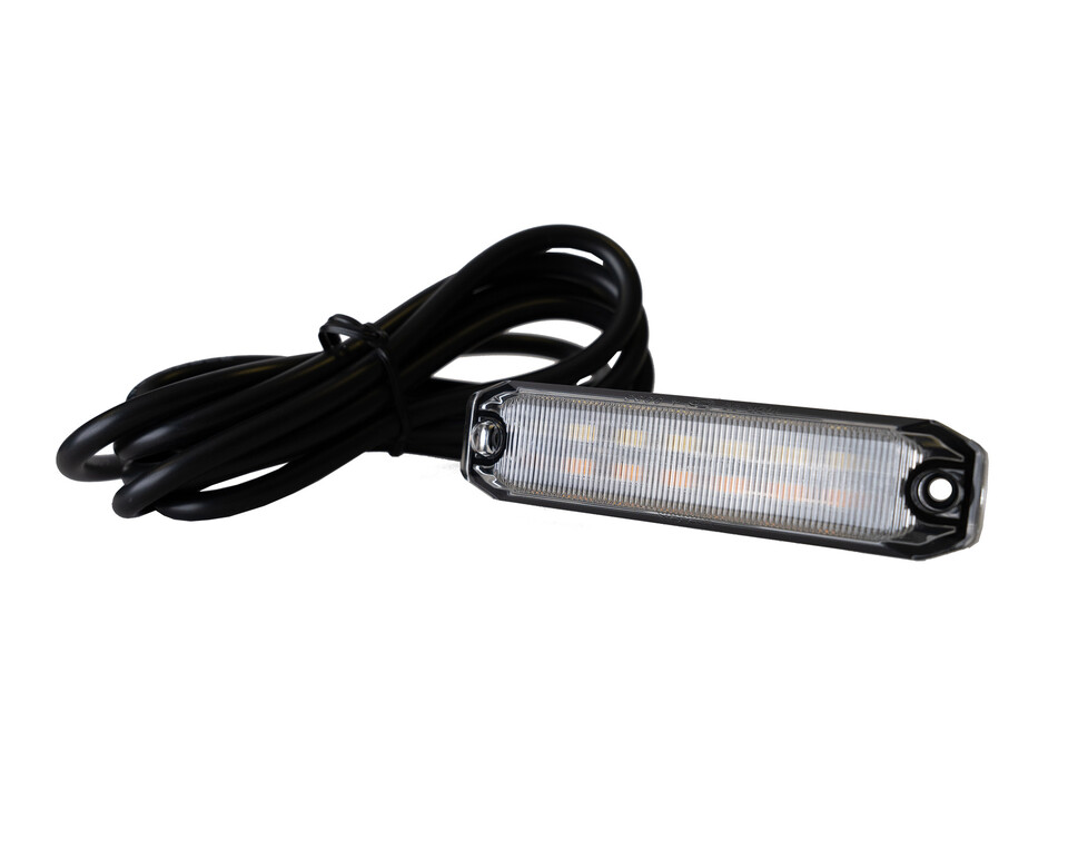 Ledson OptoLine M+ Positionslicht mit Rauchglas, schwarzem Gehäuse und sichtbaren weißen und orangen LEDs. Schwarzes Kabel.