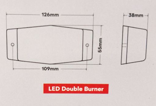 Maßzeichnung einer LED Double Burner Leuchte.