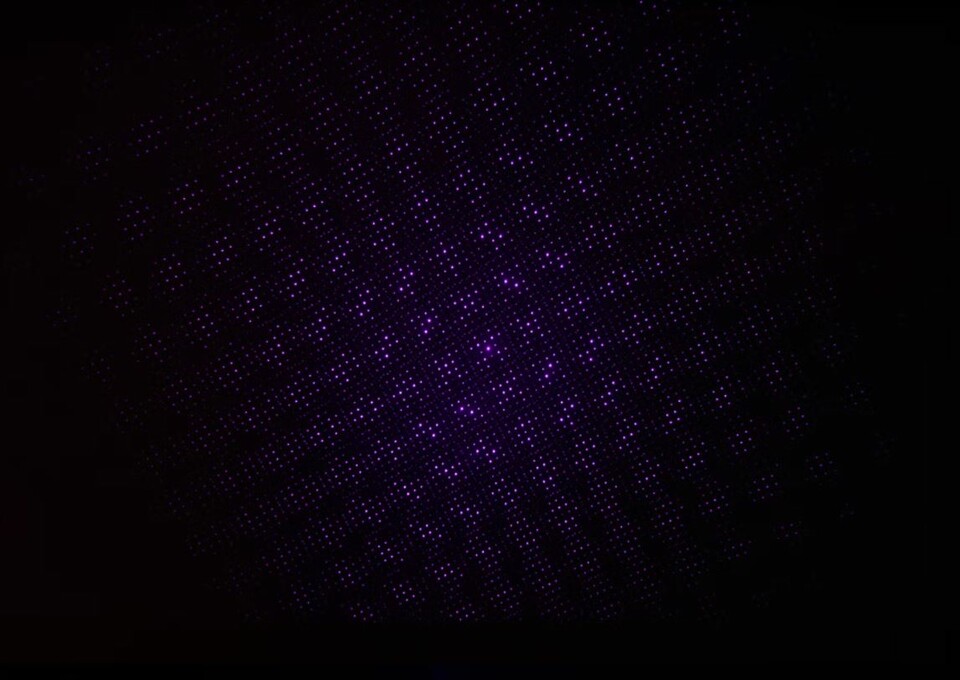 Projektion eines Sternenhimmels mit leuchtenden violetten Punkten auf dunklem Hintergrund.