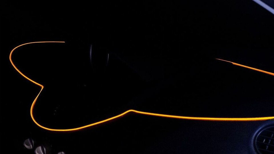 Orange leuchtender Ledson LED Glowstrip als flexible, dezente Innenbeleuchtung im Fahrzeuginnenraum.