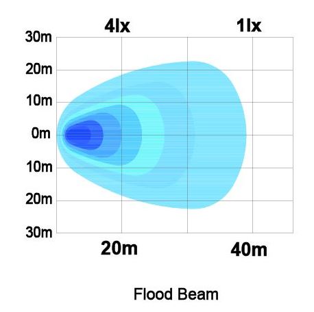 Grafik des breiten Lichtmusters des Ledson Raptor LED-Scheinwerfers, zeigt die Ausleuchtung als Flood Beam.